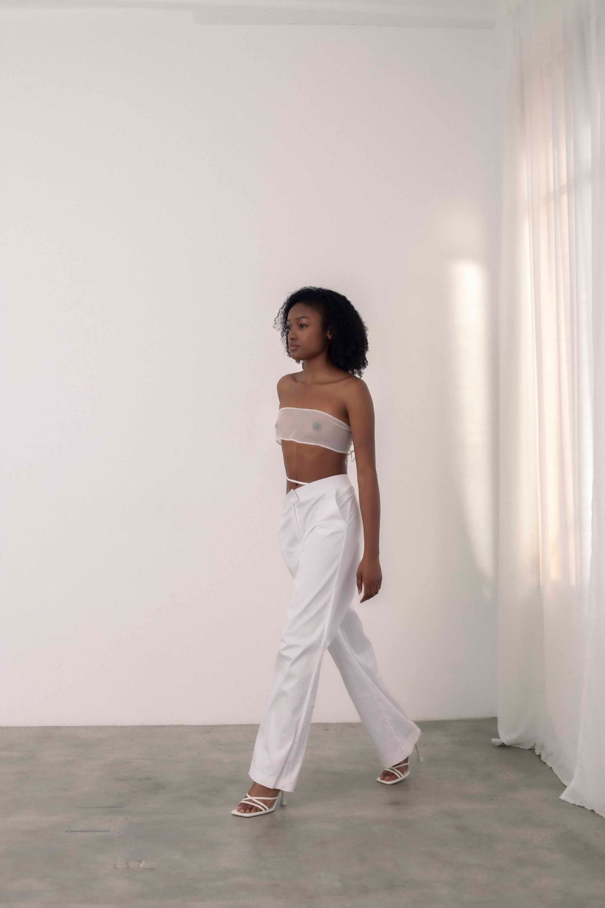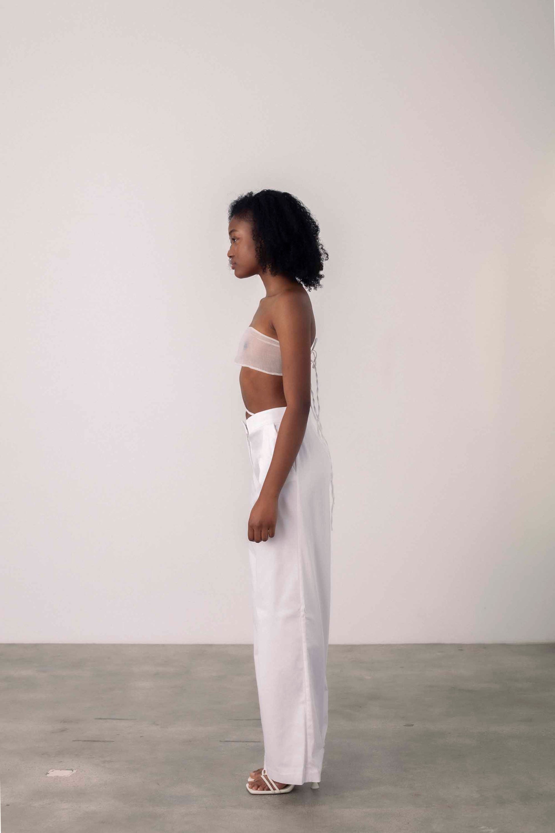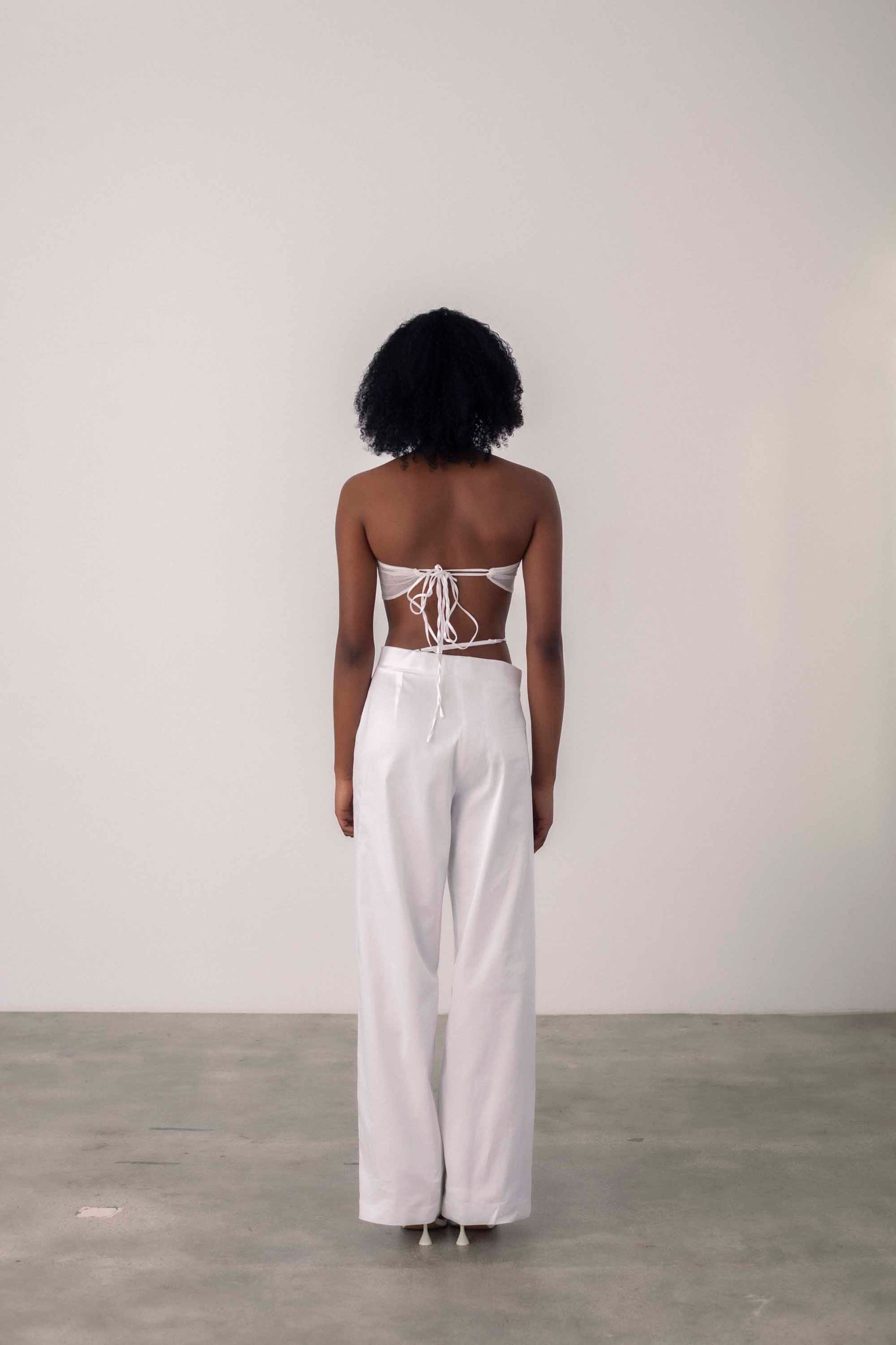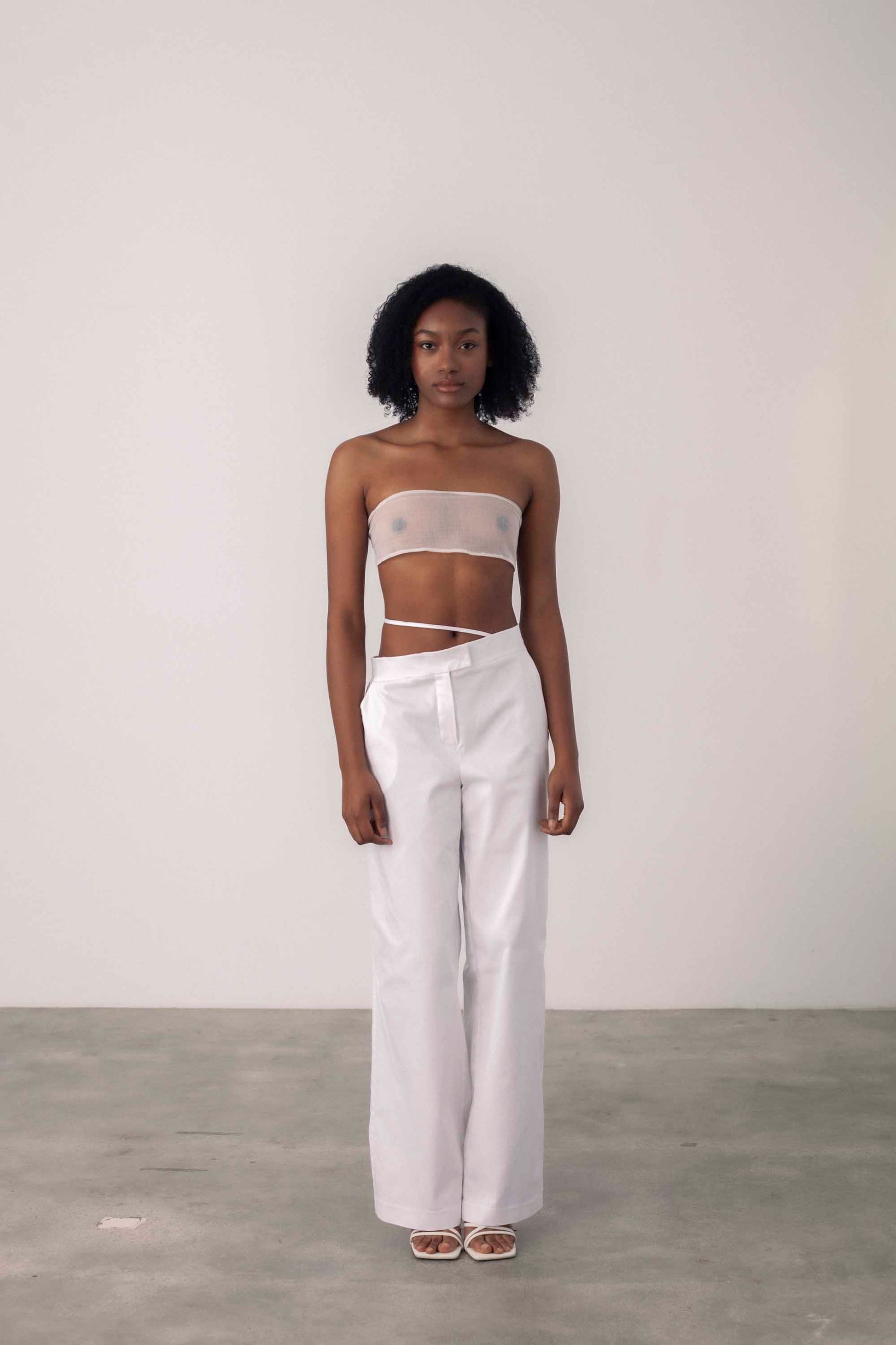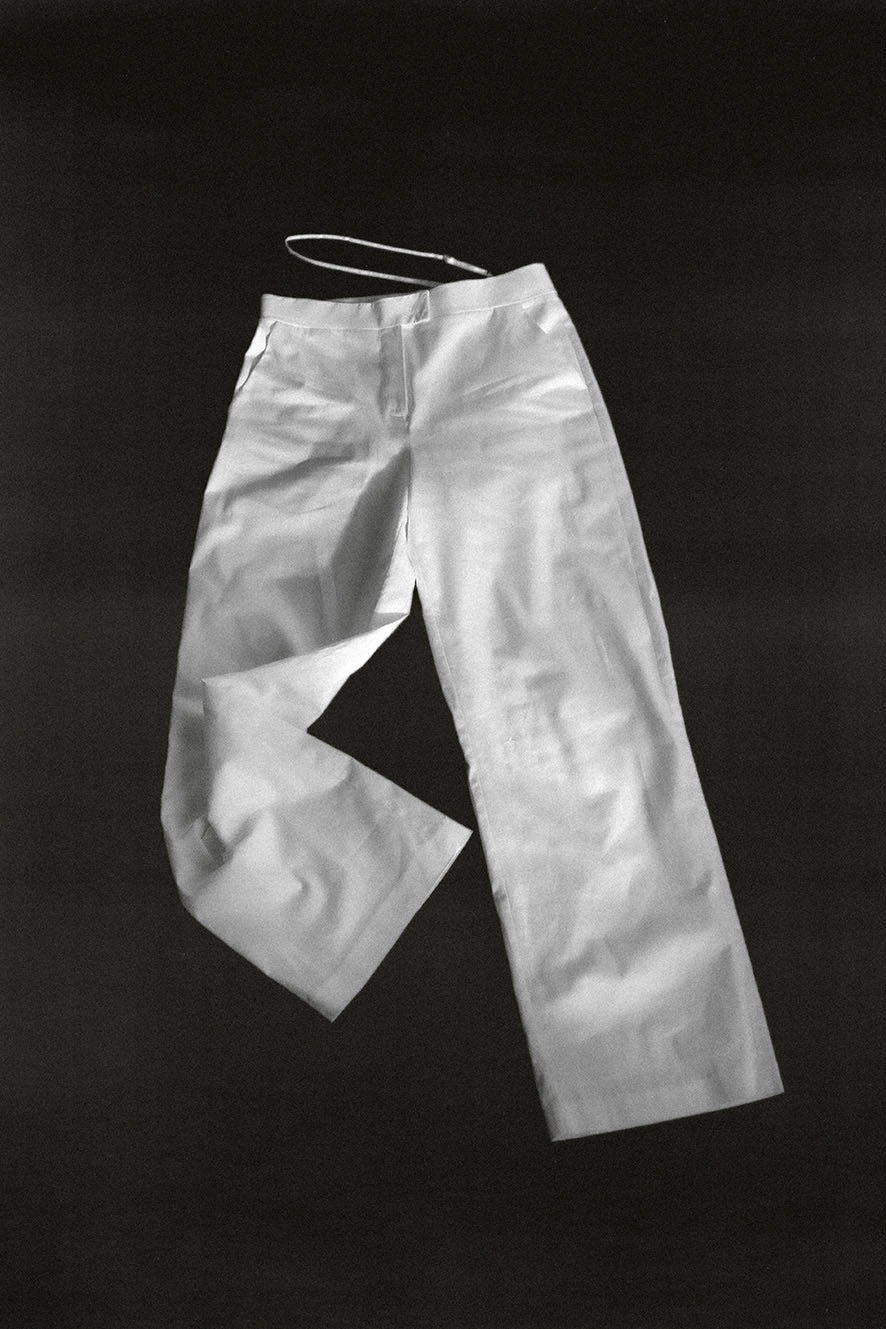 Medium rise suit pants with asymmetrical waistband and adjustable strap. Made in Barcelona.