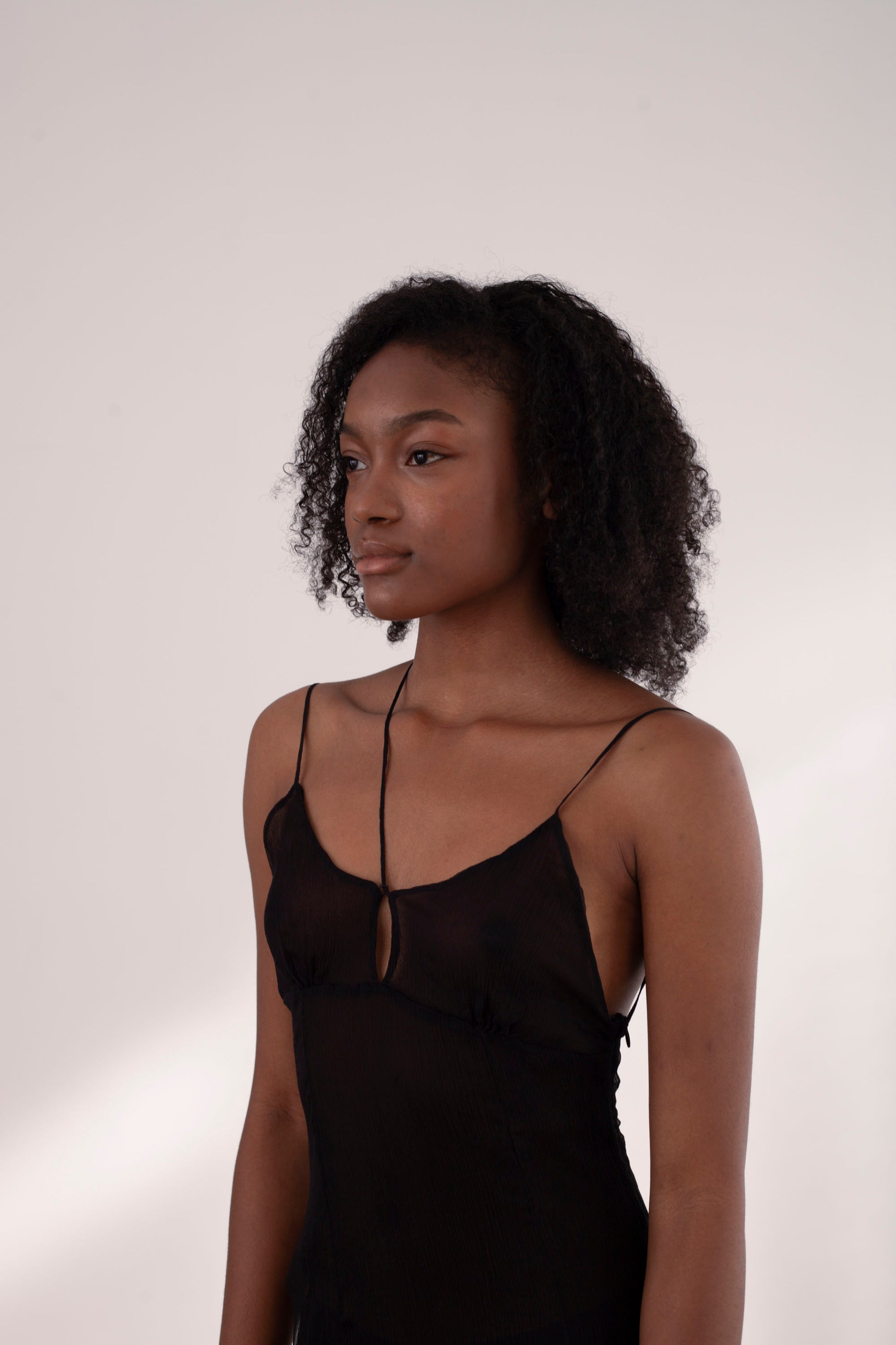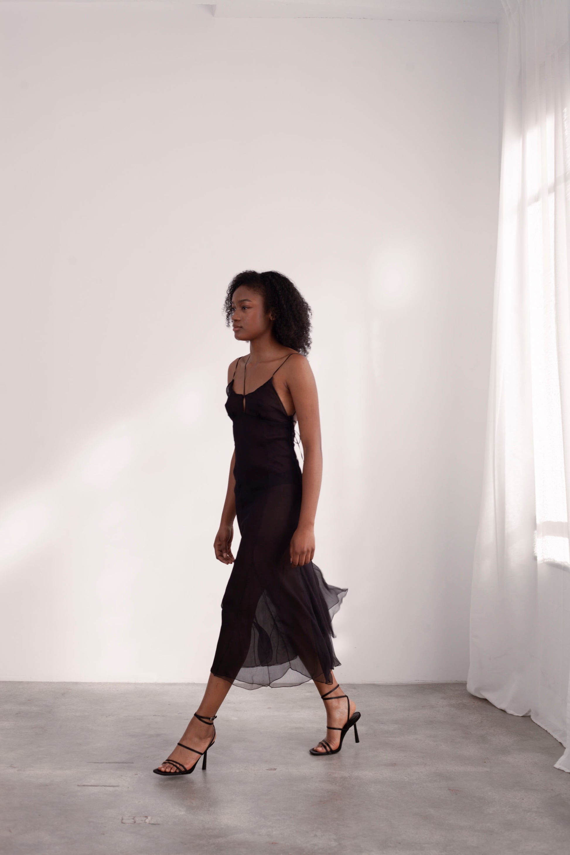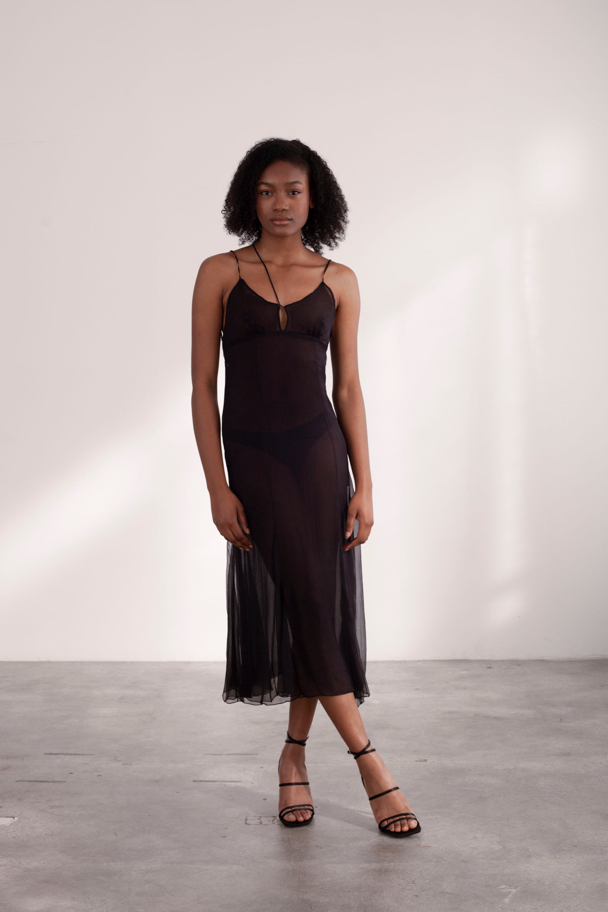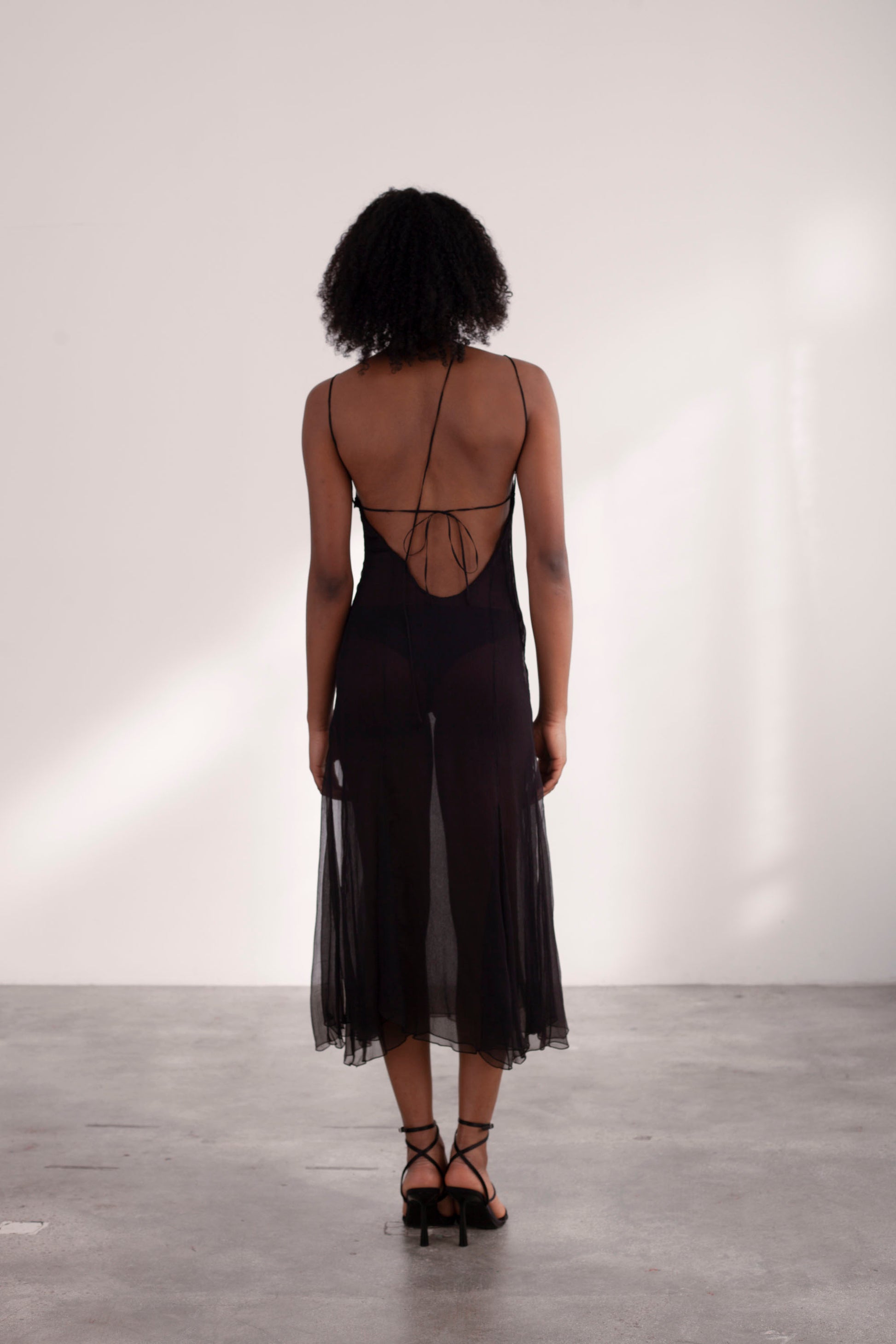 Open back delicate dress with asymmetrical straps. Made in Barcelona.