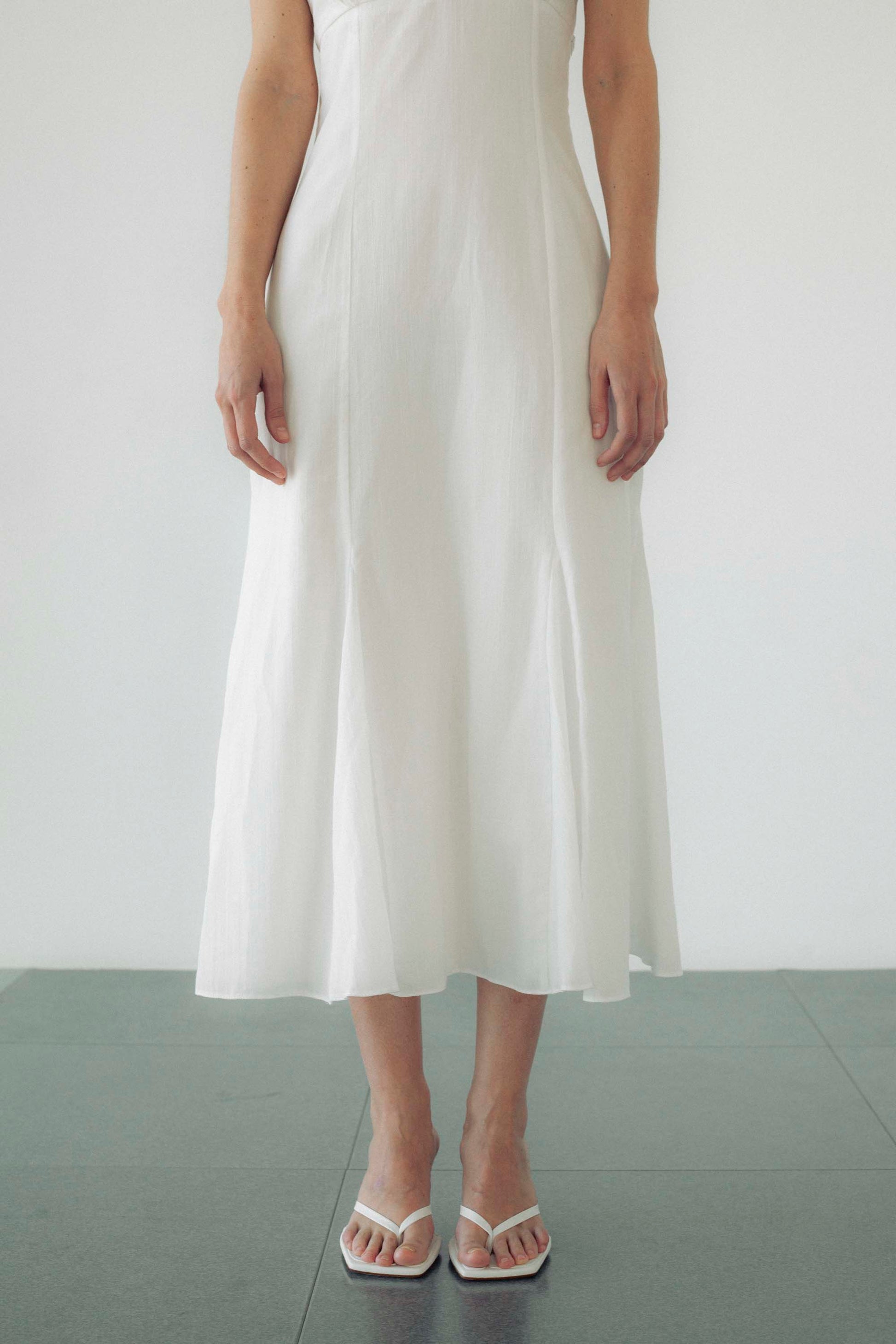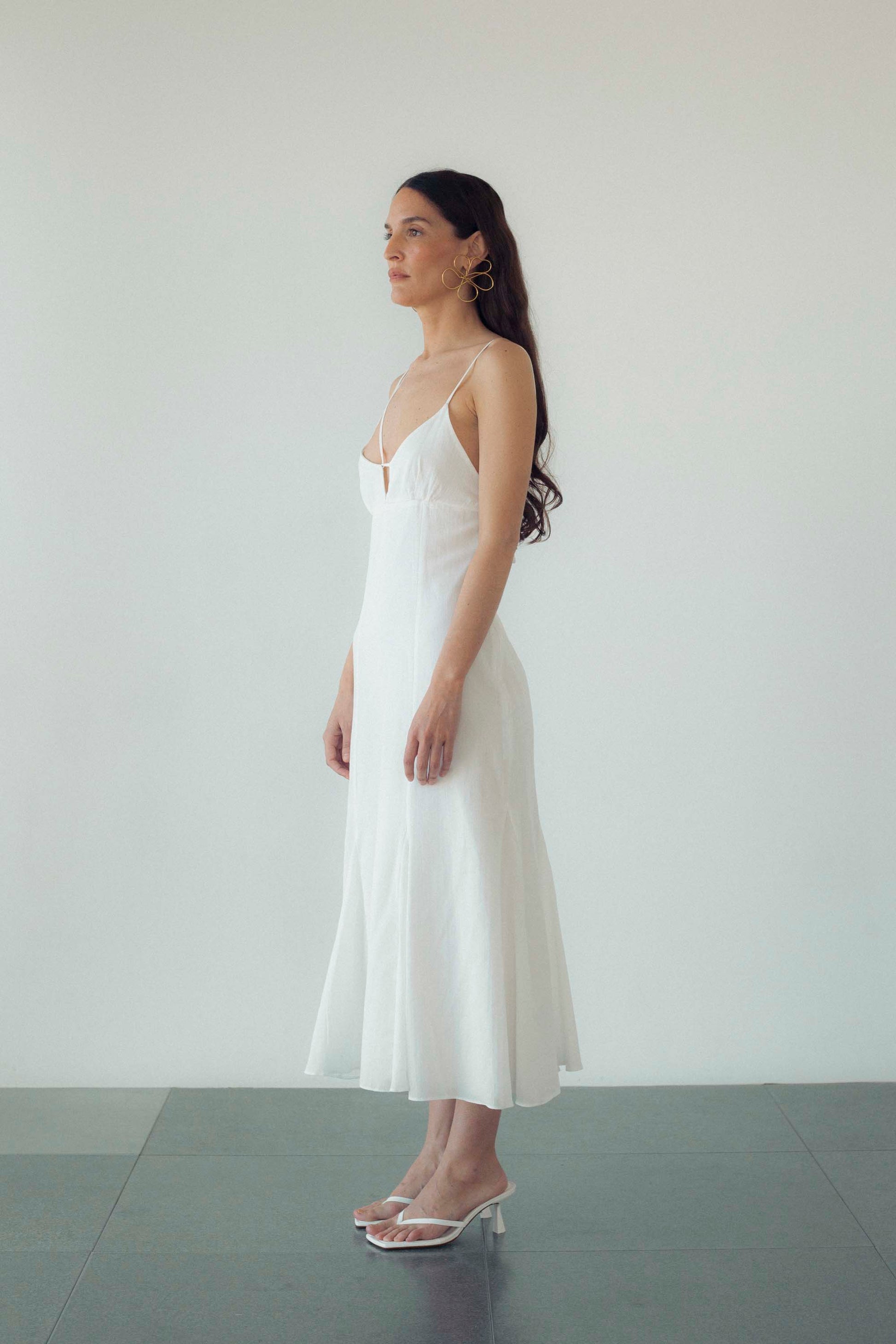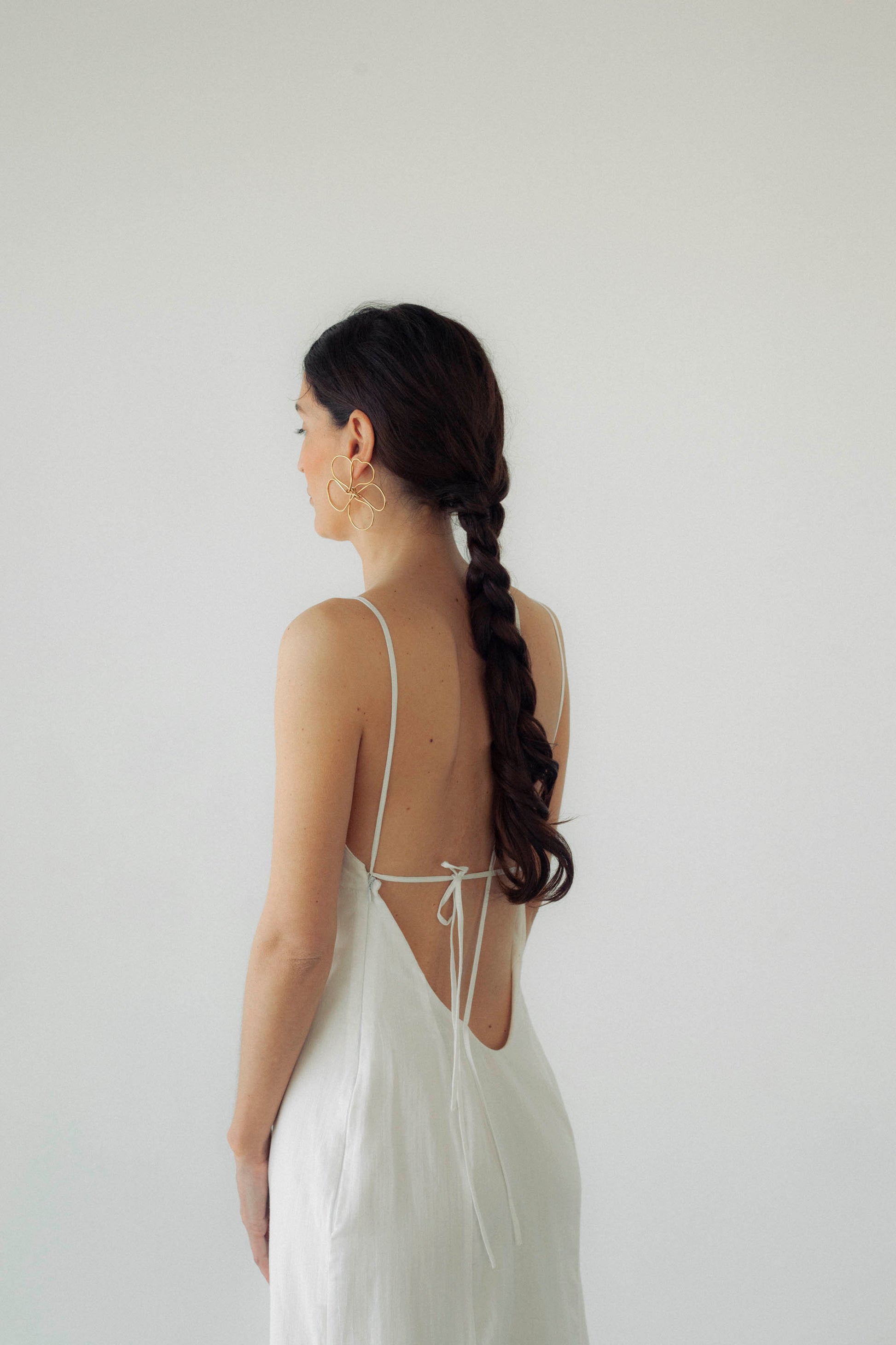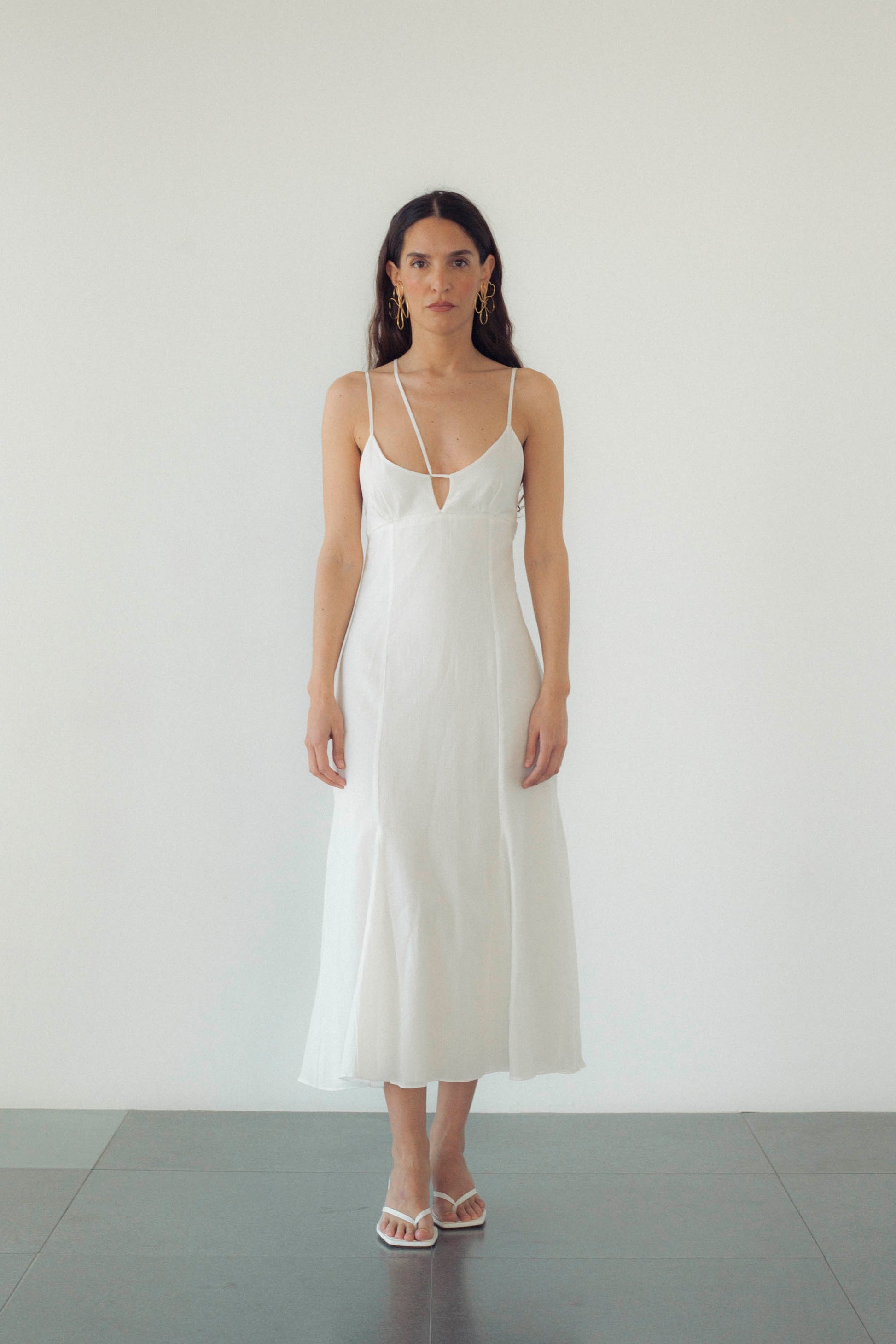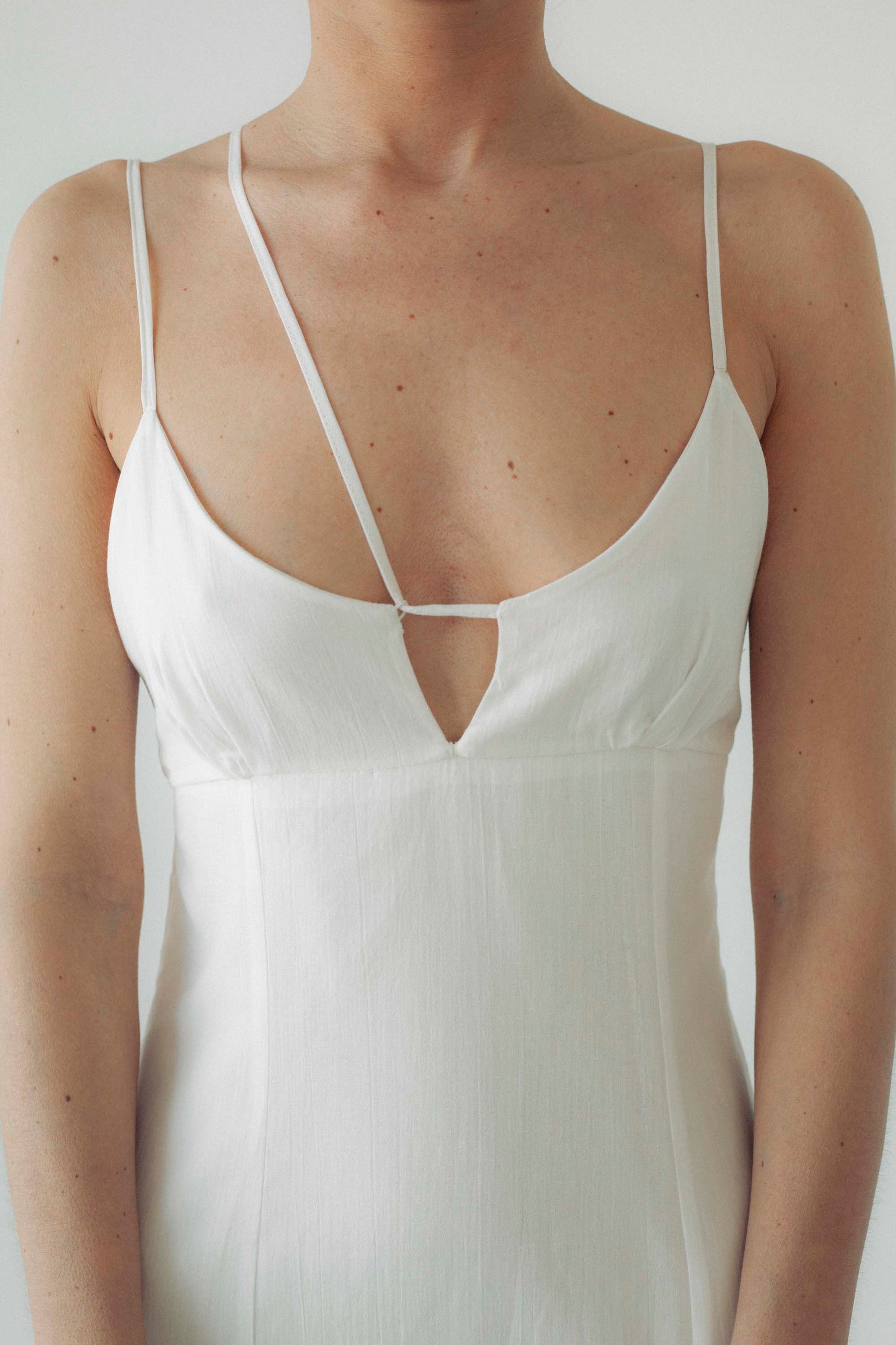 Open back cotton dress with asymmetrical straps. Made in Barcelona.